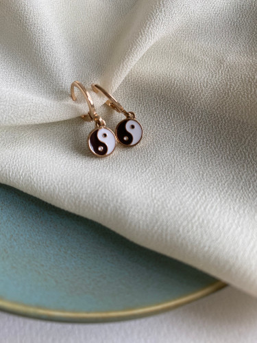 گوشواره حلقه ای زنانه مدل یین و یانگ آبکاری رادیوم