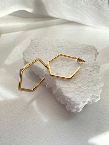گوشواره نیم حلقه زنانه مدل شش ضلعی آبکاری رادیوم