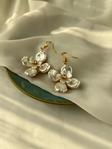 گوشواره گلی مرواریدی آبکاری نقره