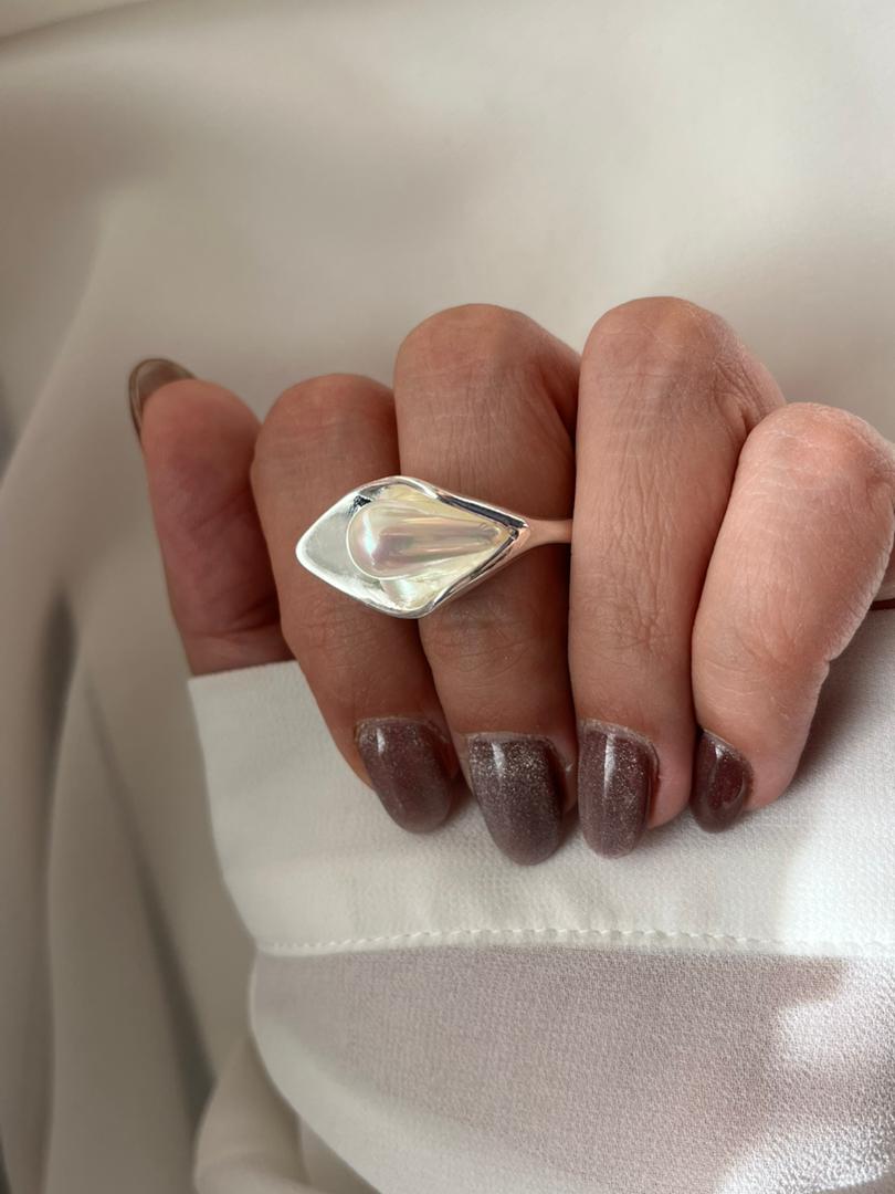 انگشتر طرح گل شیپوری آبکاری نقره ضدحساسیت برای ثبات رنگ میباست از مواد شوینده و الکل به دور باشد فری سایز قطر اولیه حلقه ۱/۸ سانتی متر