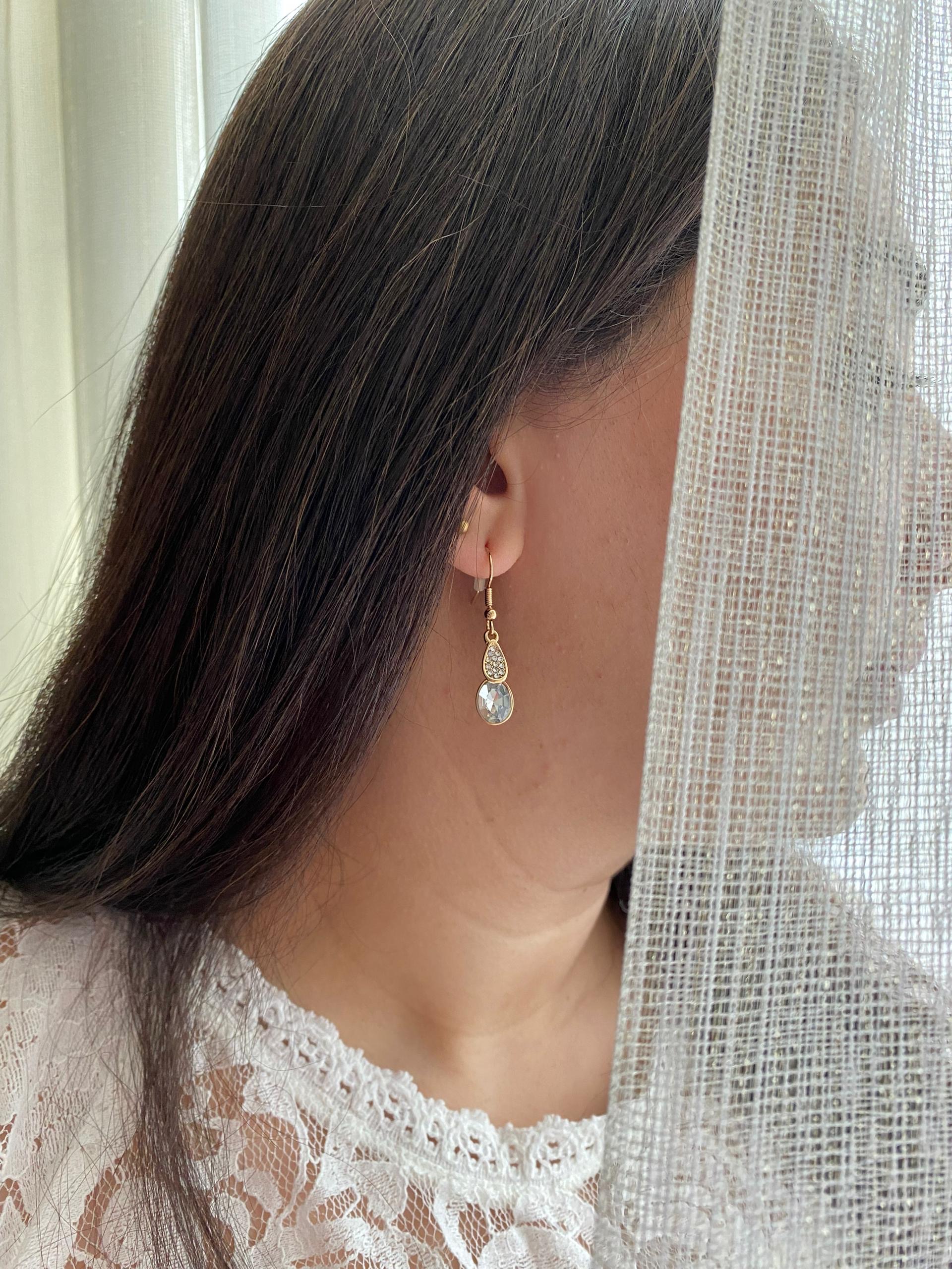 گوشواره نگیندار سارا قفل عصایی اندازه حدودا ۳/۵ سانتی متر آبکاری رادیوم میبایست به دور از الکل و مواد شوینده باشد