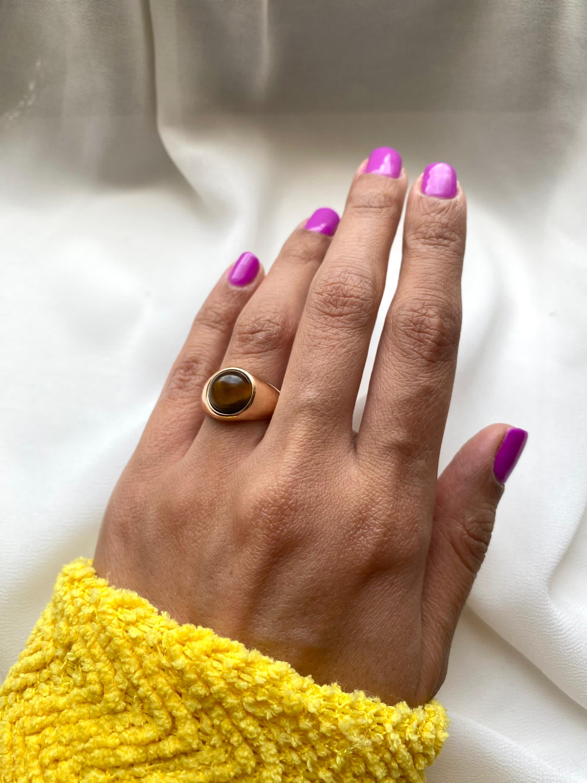 انگشتر چشم ببر آبکاری رادیوم سایز ۶«۱/۶ سانتی متر» سنگ طبیعی چشم ببر«سنگ جسارت و شجاعت» میبایست به دور از الکل و مواد شوینده باشد