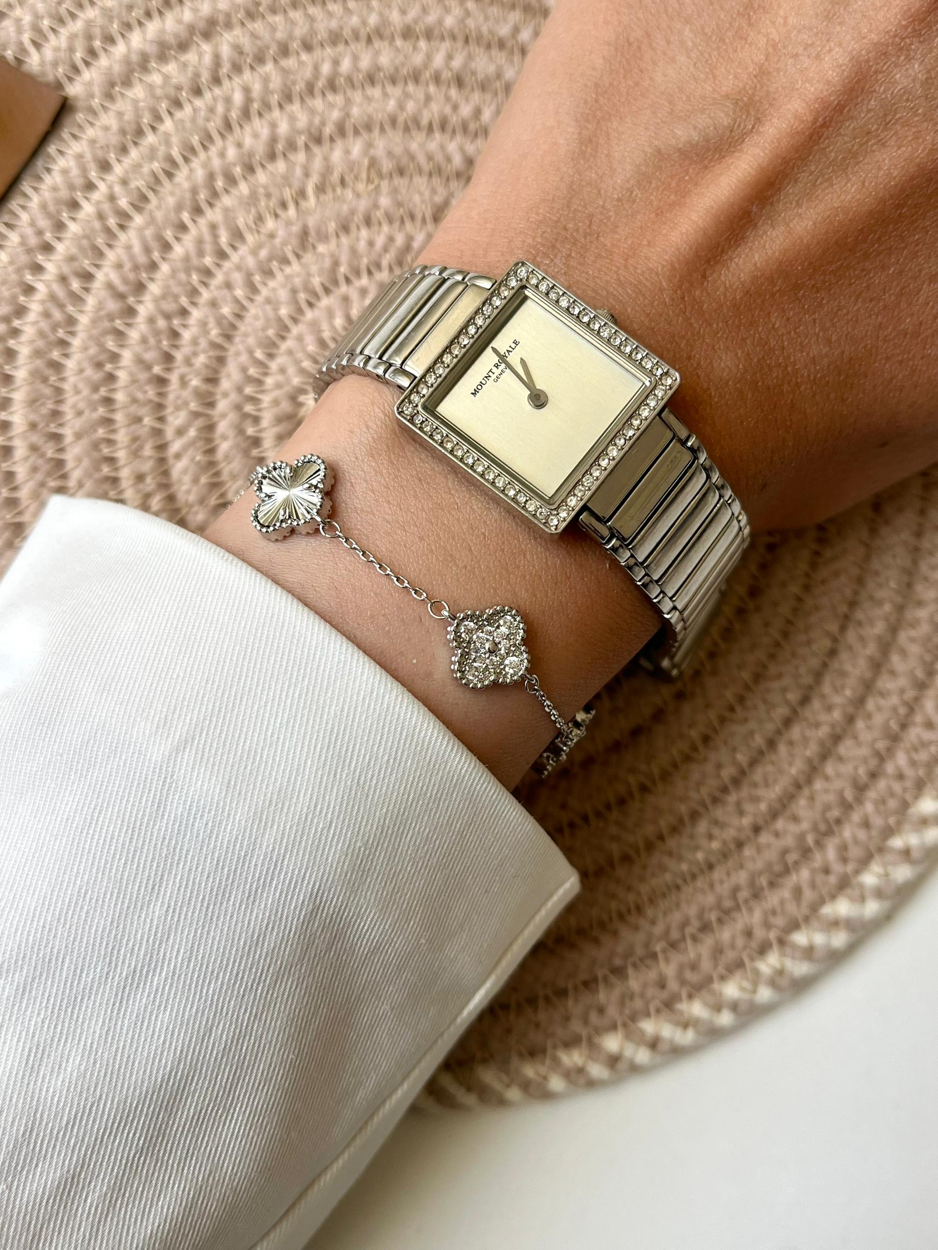 دستبند ونکلیف نگین دار آبکاری رادیوم اندازه:۱۵ سانتی متر+۴سانتی متر رگلاژ برای ثبات رنگ می بایست به دور از الکل و مواد شوینده باشد