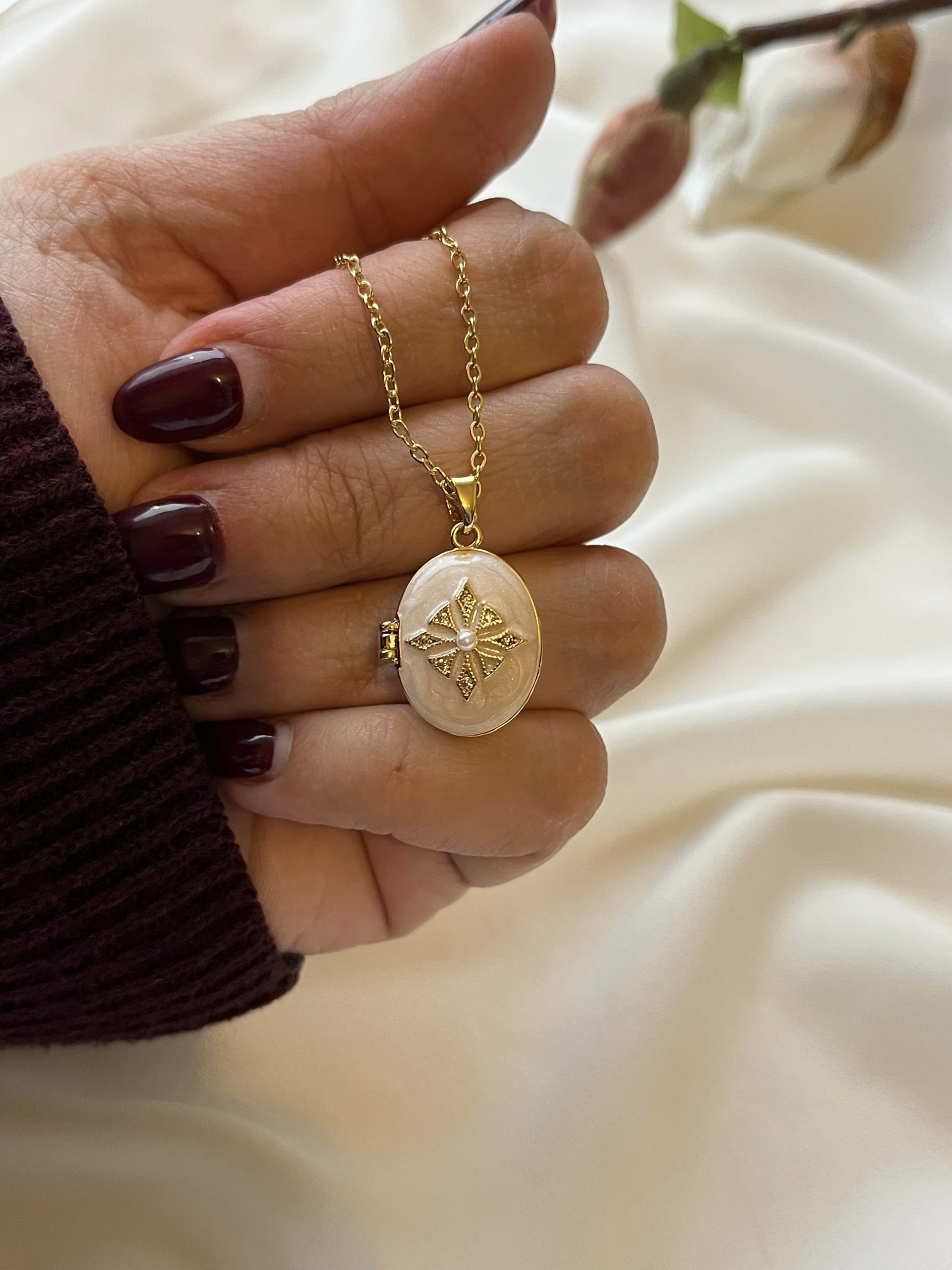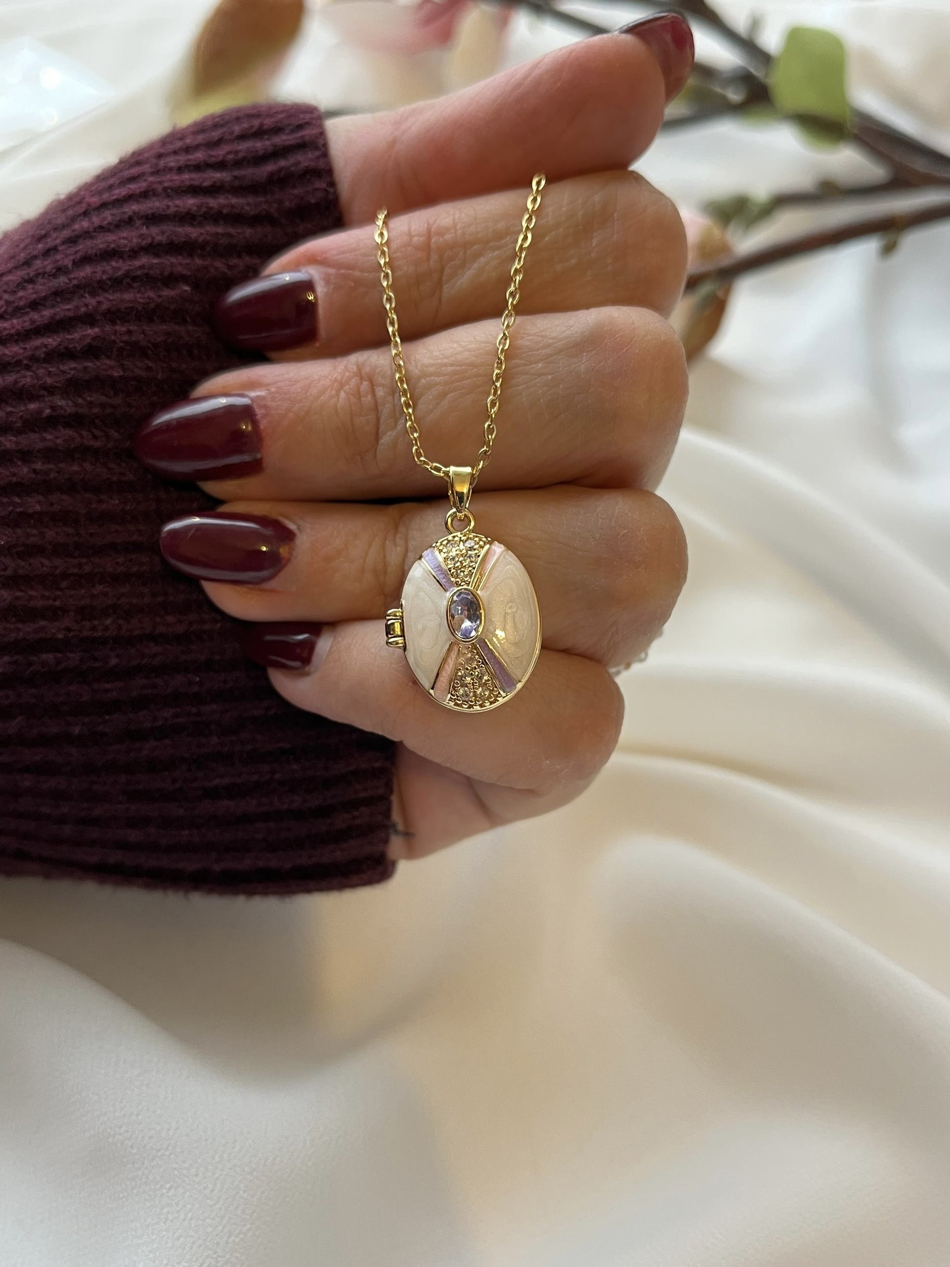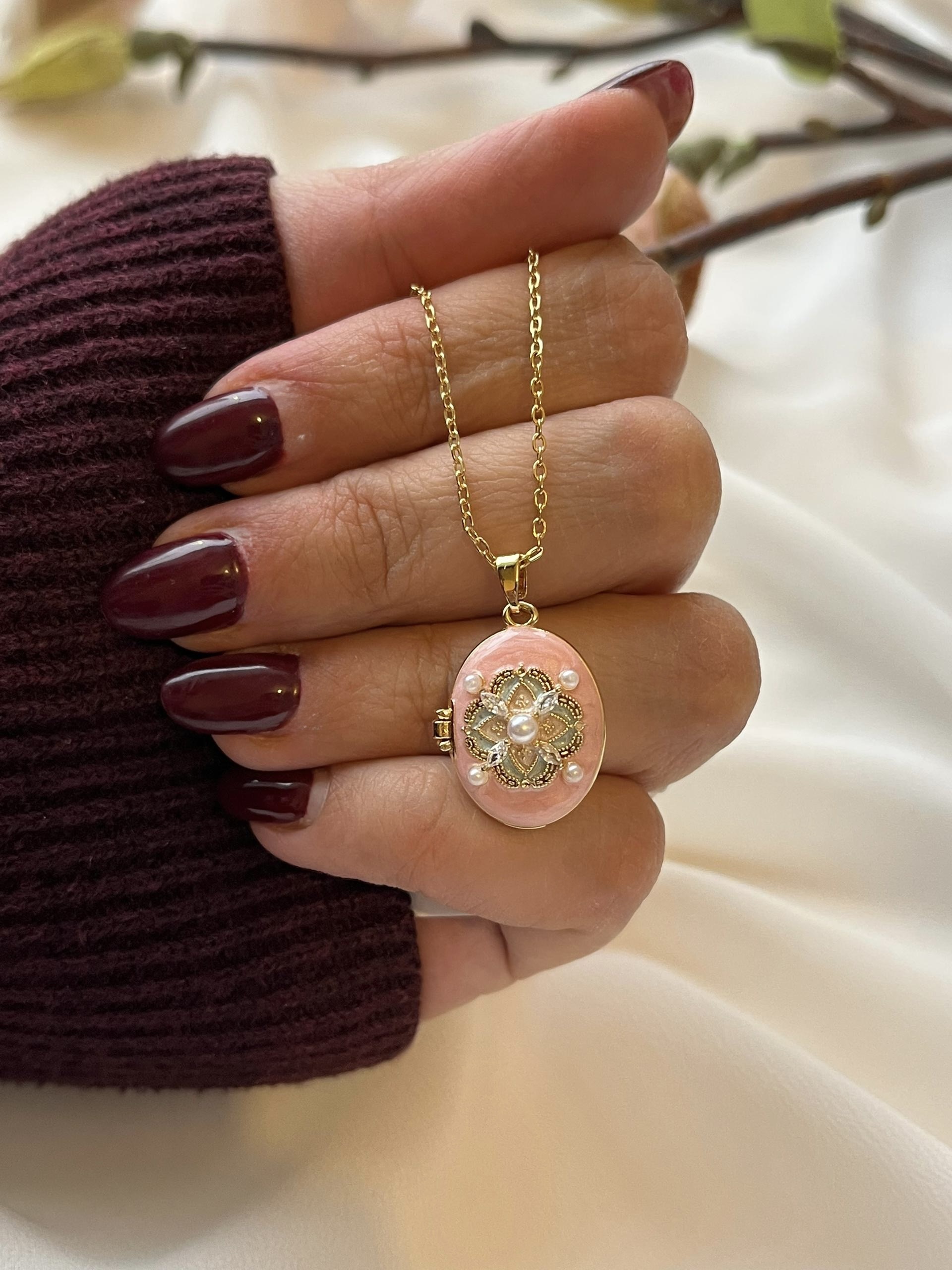 گردنبند لاکت زنانه میناکاری پینترستی با زنجیر استیل