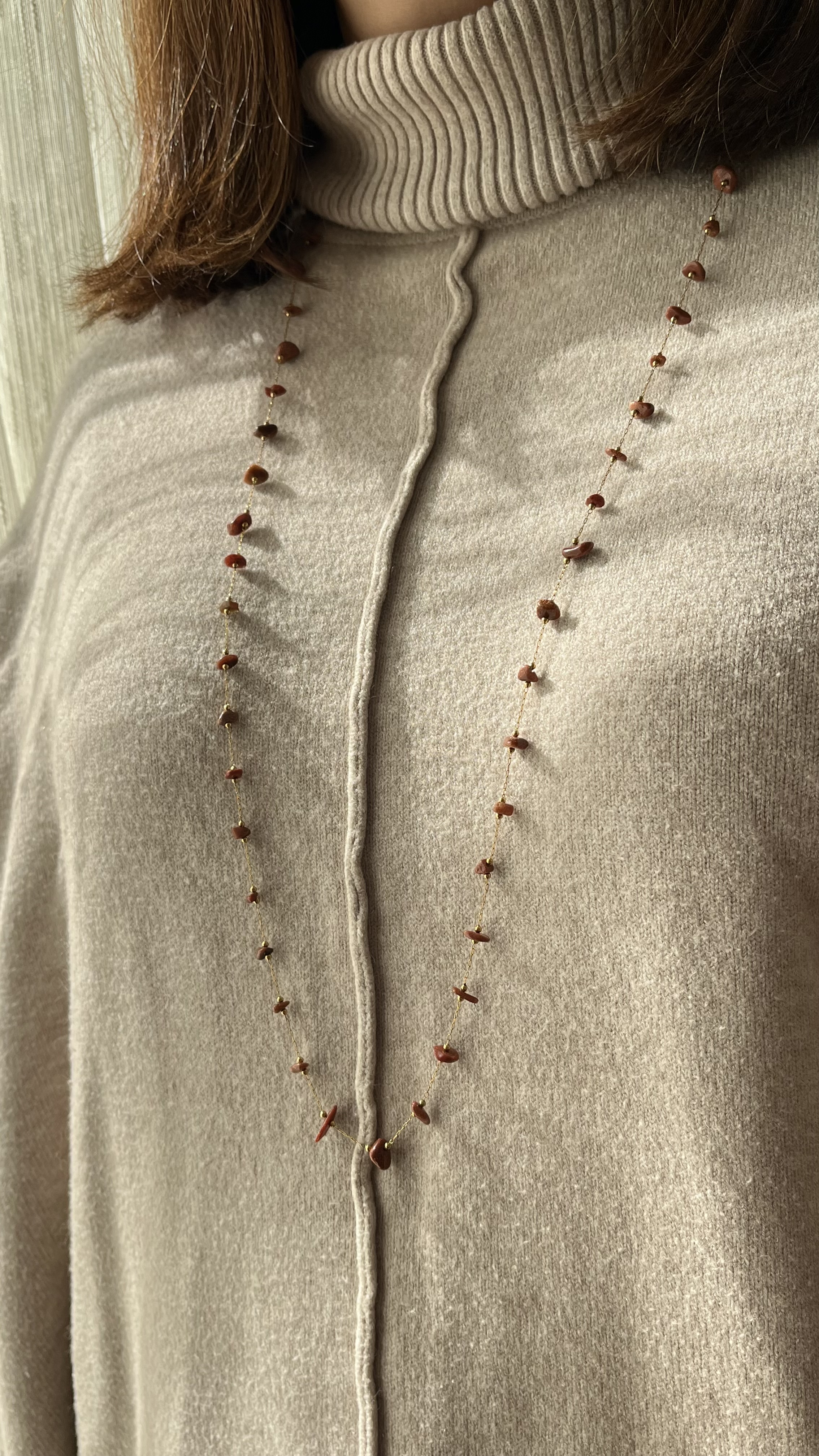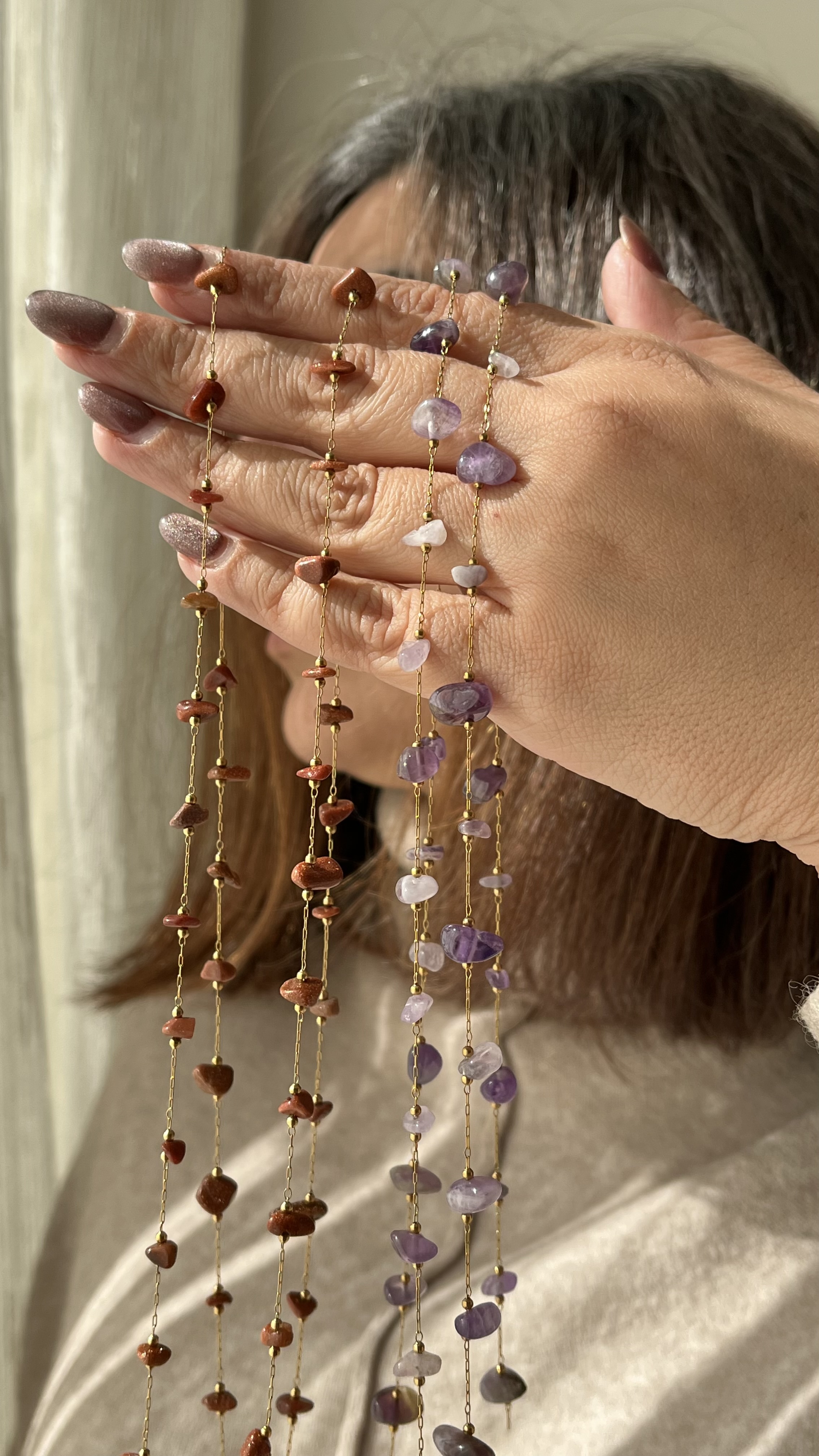 گردنبند سنگ دلربا رولباسی جنس استیل سنگ طبیعی آمیتیس طول زنجیر یک متر قابل حالت دادن بصورت دلخواه تک لاین و دولاین