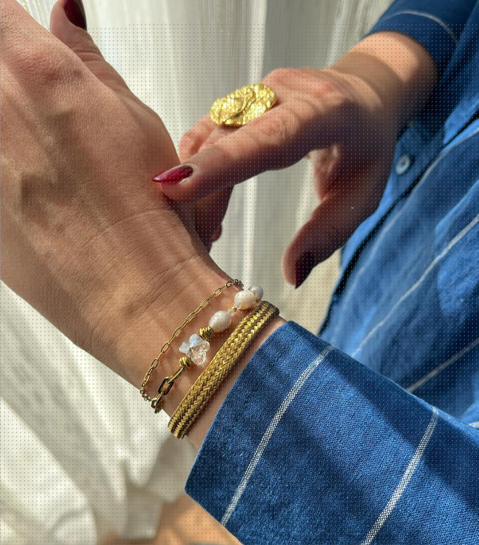 دستبند استیل زنانه زنجیری-مرواریدی همراه با کریستال سواروسکی شیک و مینیمال کریستال پروانه از جنس کریستال سواروسکی هست