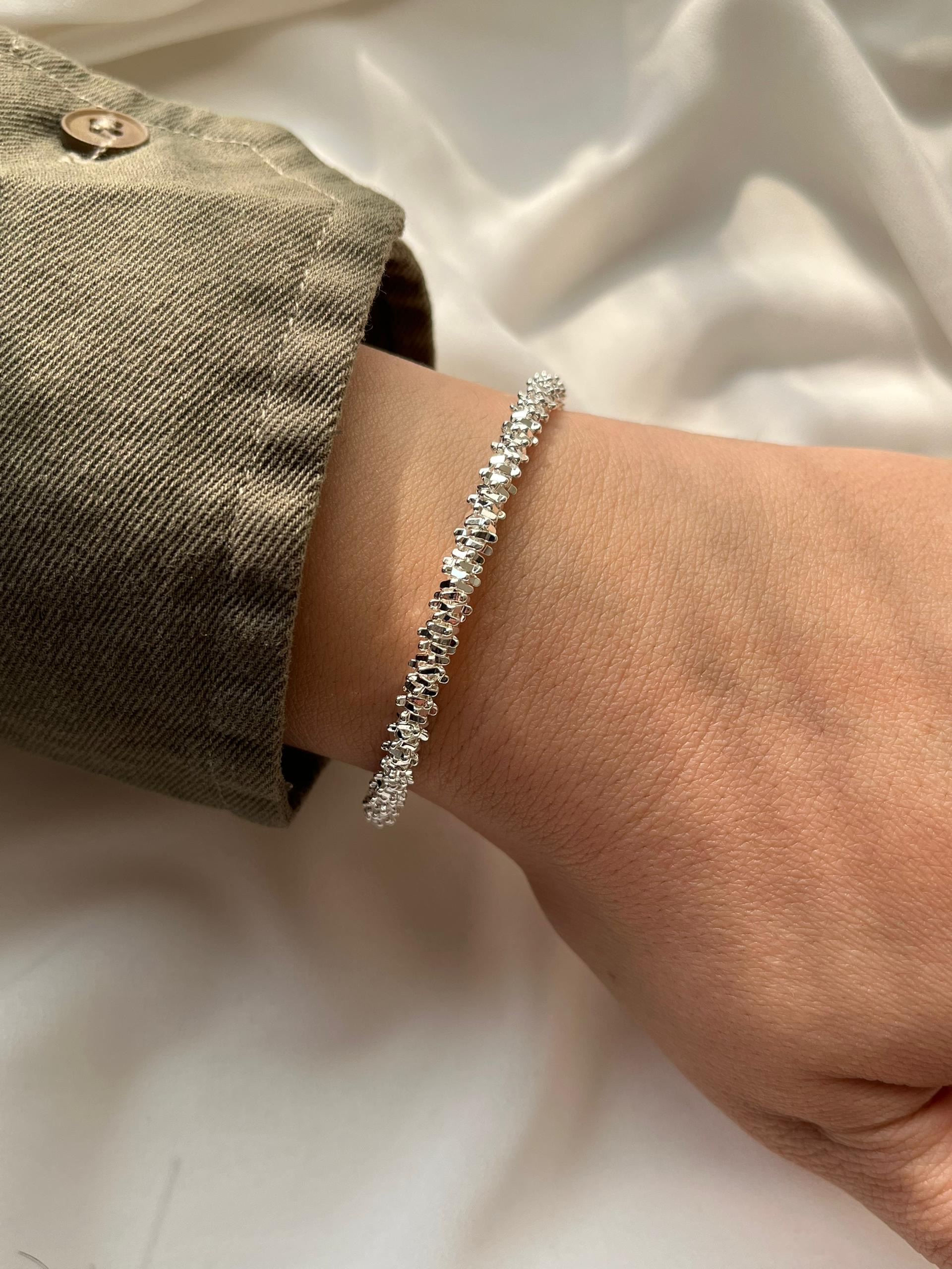 دستبند زنانه طرح خاویاری ضخامت۴میل آبکاری نقره درجه یک بسیار درخشان ضدحساسیت در صورت استفاده صحیح دوام رنگ طولانی خواهد داشت اندازه ۱۶ سانتی متر+۴ سانتی متر زنجیر رگلاژ