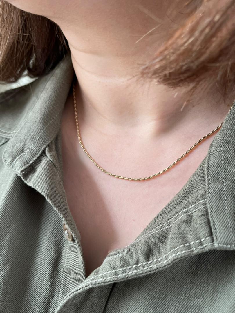 زنجیر تک زنانه مدل طنابی برند ژوپینگ آبکاری طلا و ضدحساسیت ثبات رنگعالی در صورت استفاده صحیح اندازه ۴۵ سانتی متر