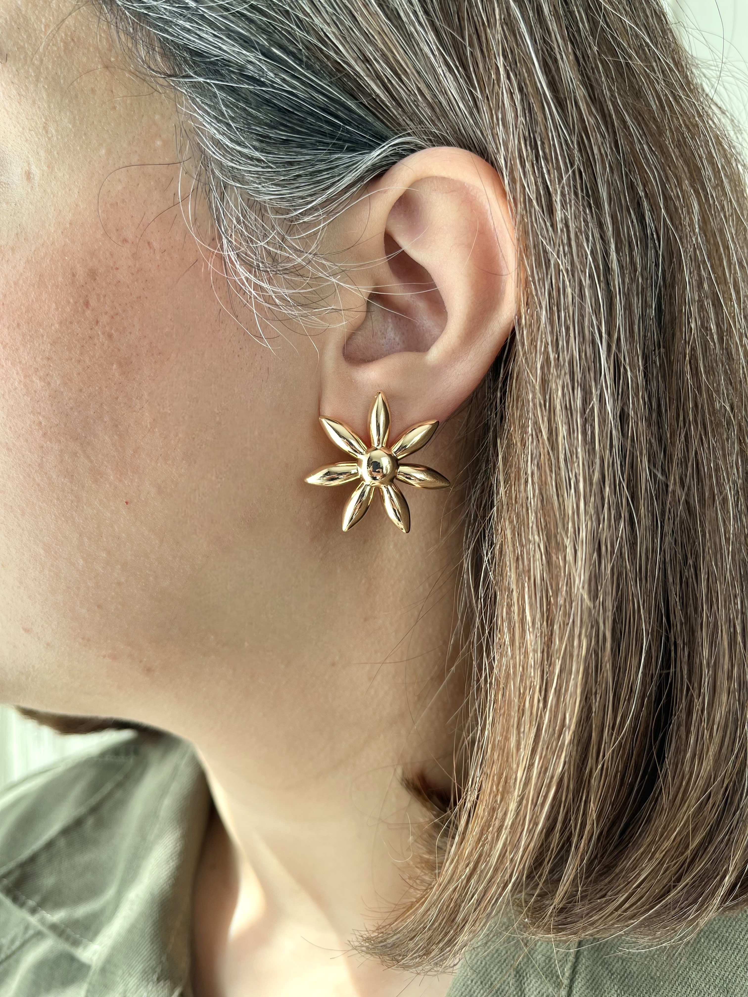 گوشواره زنانه مدل گل بابونه برند ژوپینگ اصل آبکاری طلا ۱۸ عیار ضدحساسیت ثبات رنگ عالی در صورت استفاده صحیح