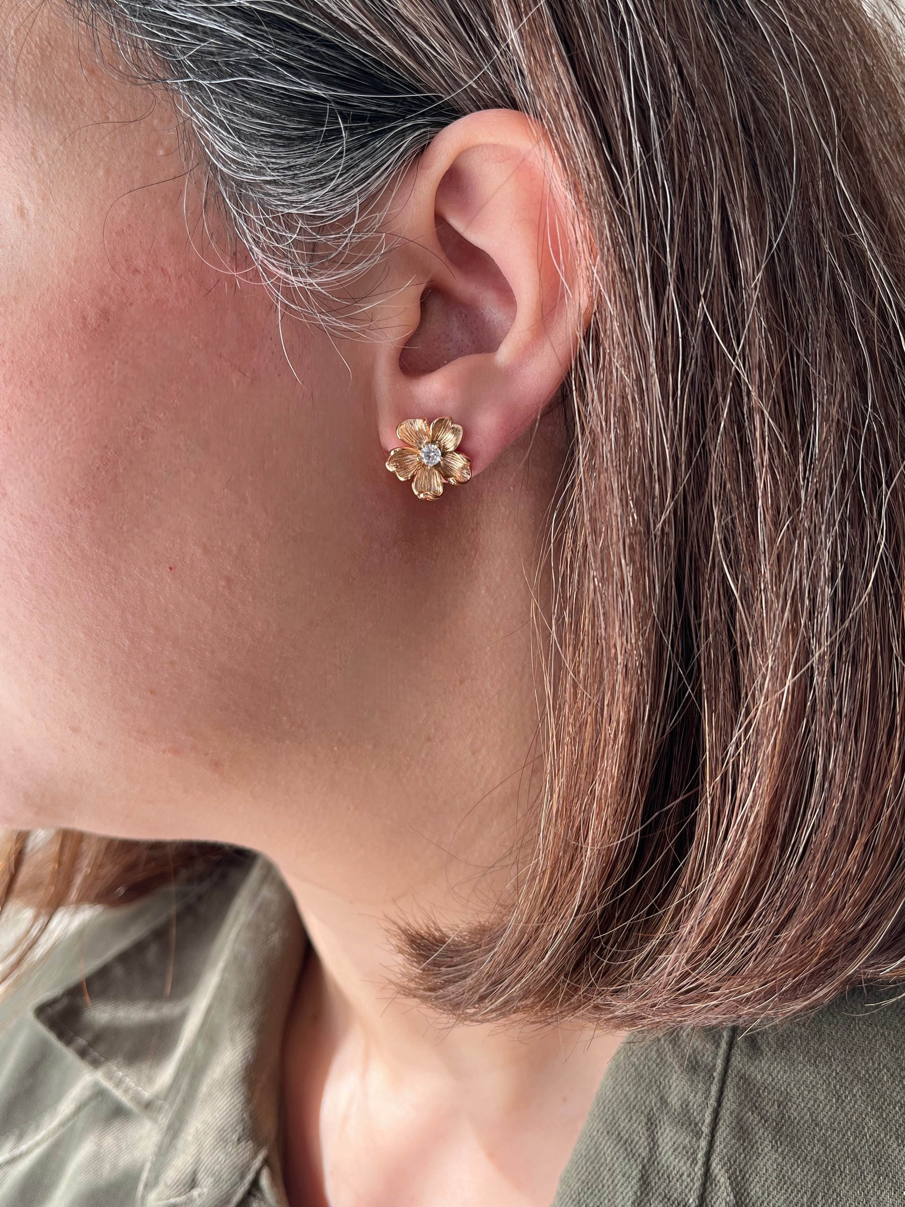 گوشواره زنانه طرح گل زارا از برند ژوپینگ اصل آبکاری طلا ۱۸ عیار ضدحساسیت ثبات رنگ بالا در صورت استفاده صحیح