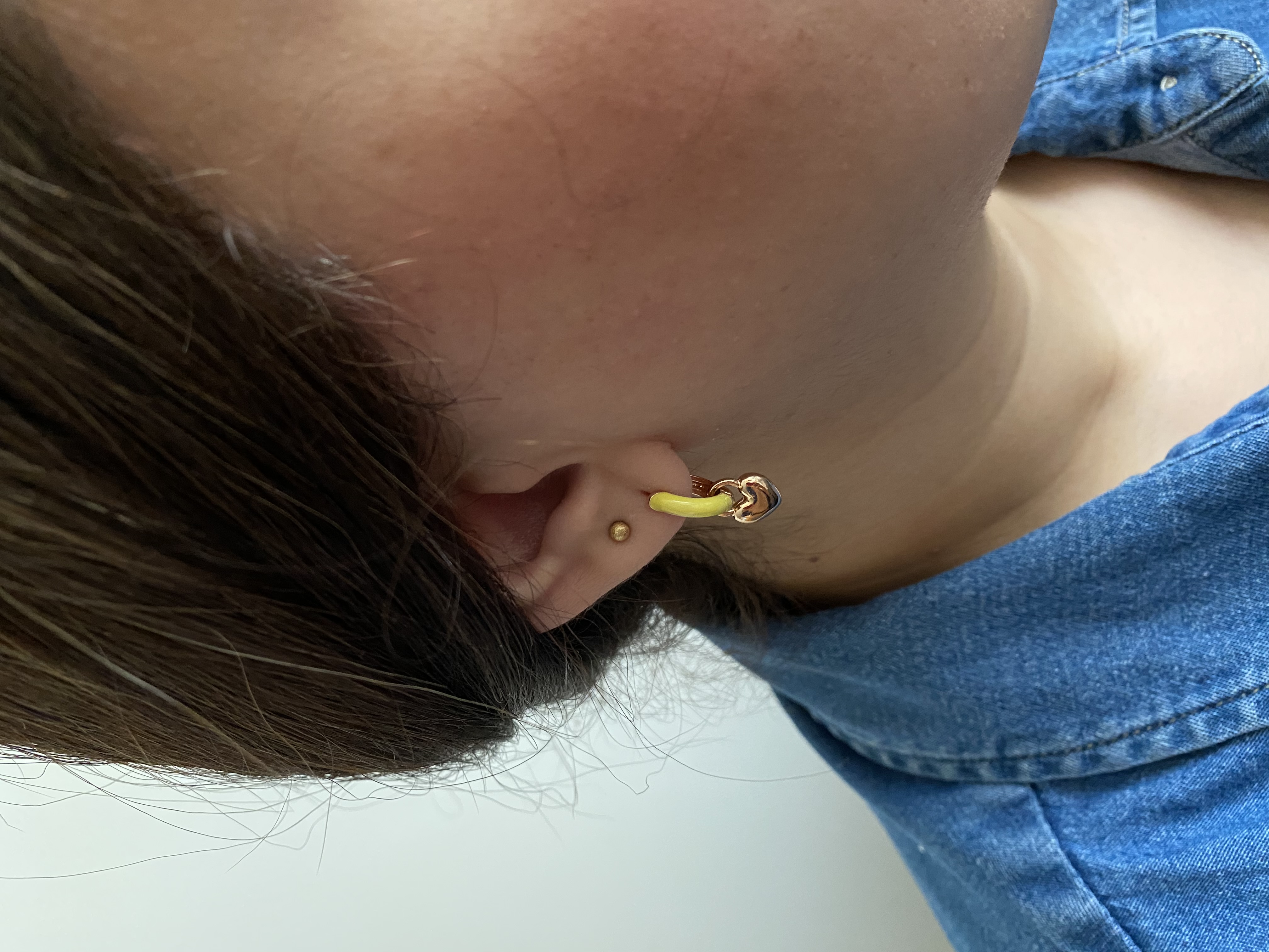 گوشواره حلقه ای میناکاری با آویز قلب آویز قلب قابلیت جدا شدن دارد آبکاری رادیوم قفل محکم و بسیار راحت داخل گوش برای دوستانی که حساسیت دارند پیشنهاد نمیشود