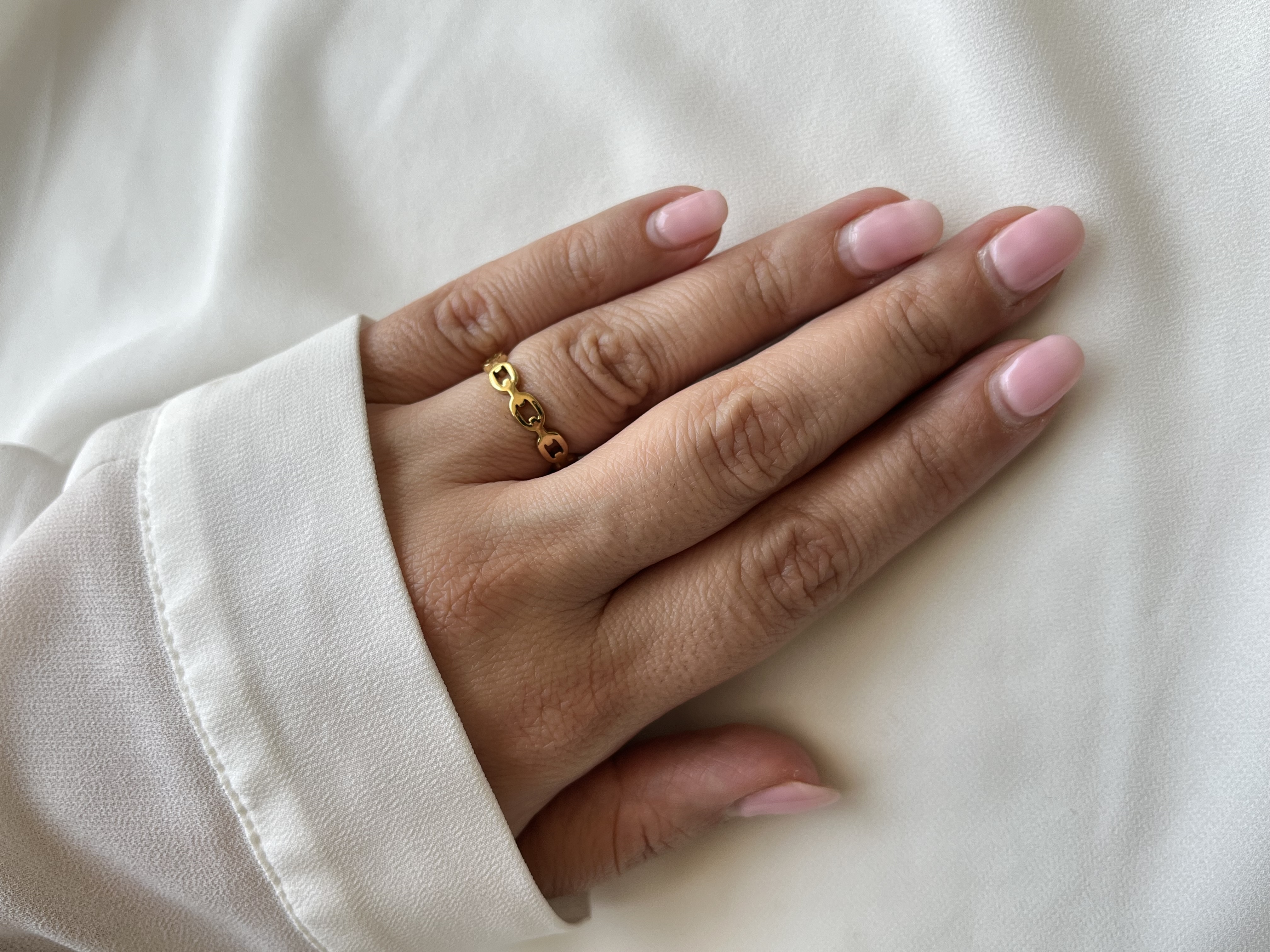 رینگ طرح هرمس تمام استیل برای مشابهت رنگ به طلا ،روی کار آبکاری طلا شده است ضدحساسیت ثبات رنگ عالی مناسب برای سایز ۷«دور انگشت ۶سانتیمتر»