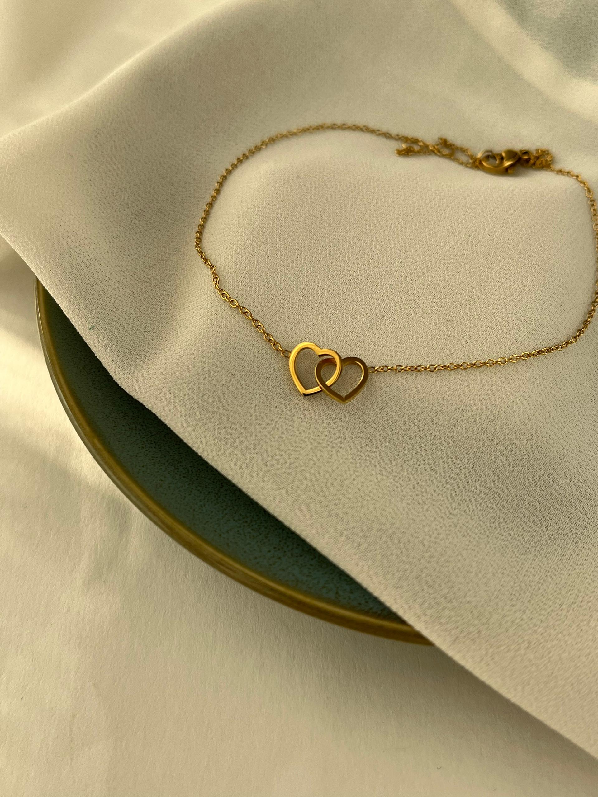پابند زنانه مدل قلبی تمام استیل آبکاری طلا