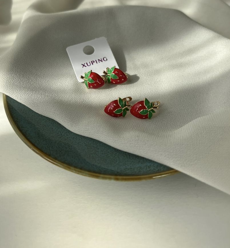 گوشواره حلقه ای دخترانه و زنانه مدل توت فرنگی ژوپینگ