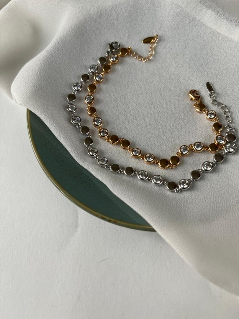 دستبند ظریف زنانه طرح طلا خاکی آبکاری نقره