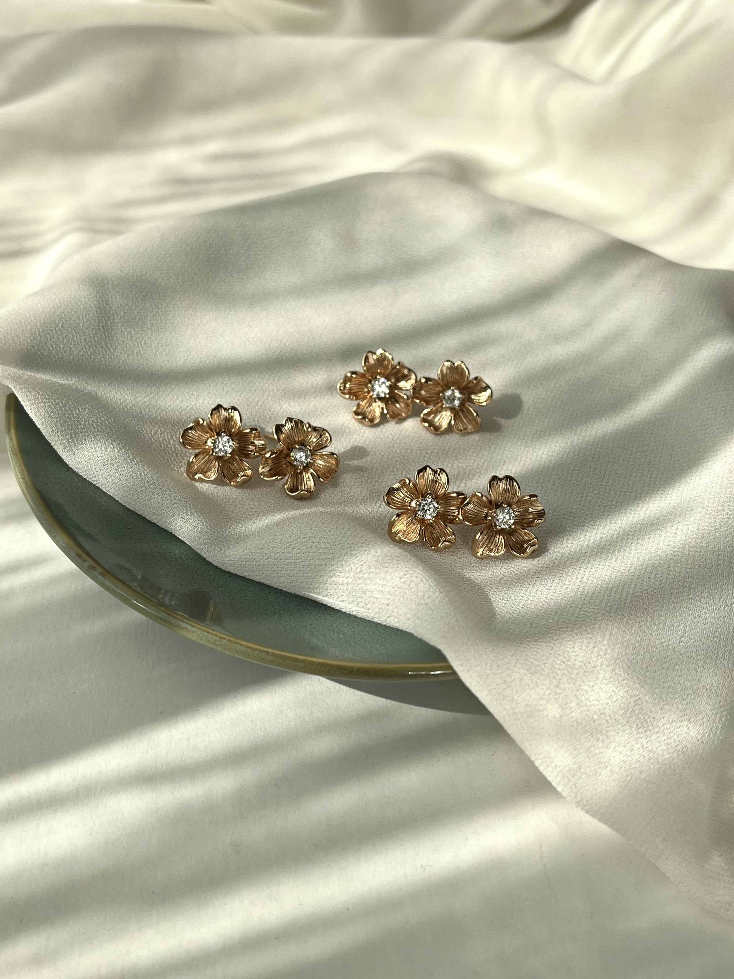 گوشواره آبکاری طلا زنانه مدل گل زارا برند ژوپینگ